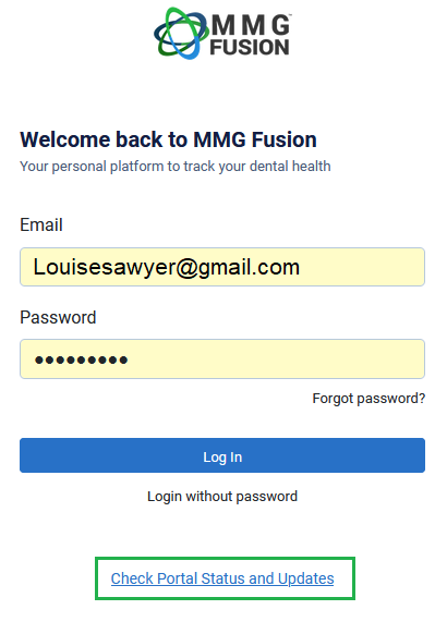 Portal Status and Updates You can check for live statuses and planned updates by clicking on "Check Portal Status and Updates" from your log in screen.
