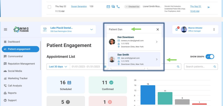 Using the “Search patients” search bar at the top of the portal will allow you to search throughout all of your locations, not just the one you’re in currently.