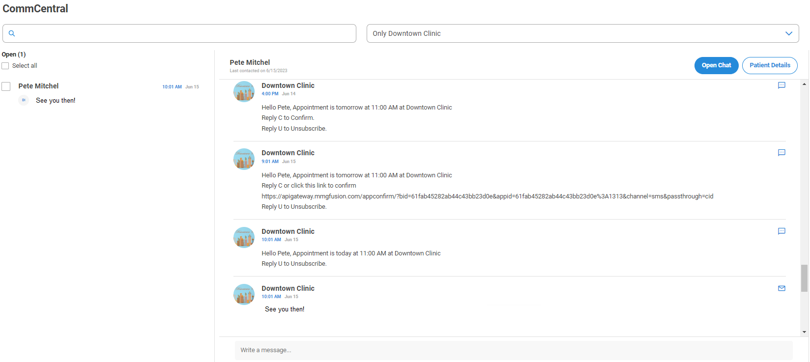When a new message is received, the historic of the patient's communication will display along with the new message.