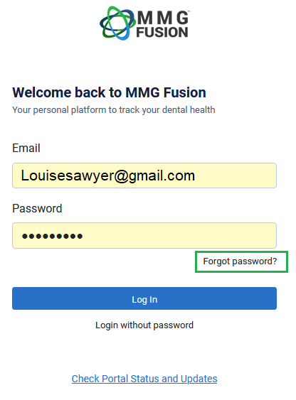 How do I reset my password? On the main log in screen of your MMG Fusion portal click "Forgot Password".You will be sent a secure email if you have an email address on file with a link to create a new password.