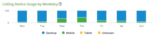 - The number of times your listings appeared on each device type (Desktop, Mobile, Tablet) broken down by days of the week