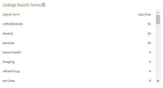 - The most common search terms consumer use to search for your listing