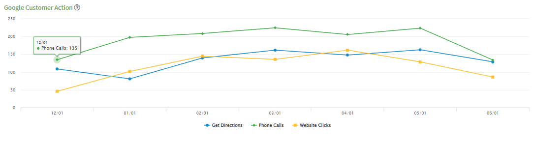 - The number of times consumers took action from your listing (click to call, click on a link, directions)